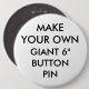 Custom printed personalised VERY BIG LARGE GIANT 6" ROUND BUTTON PIN BADGE Blank Template (1.25" - 6" available). Design, create, make your own. Vivid full colour print of your photo, pattern, image, text. Scratch and UV-resistant Mylar protective coating. Available in 5 circular sizes: 1.25", 2.25", 3", 4", 6" diameter round buttons and a 2" square button. Made in U.S.A. Best for political and social quotes and statements, funny pictures for kids, expressing your individuality, and for birthday and Christmas gifts.