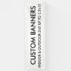 OUTDOOR BANNER WITH METAL GROMMETS: 13 oz. sturdy and durable, fade and tear resistant, holds up against the elements. White flexible material with an elegant matte finish. 3/4" OD brass grommets spaced every 2' along long lengths of banner with 1 weld in each edge.