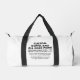 Custom personalised All Over Print Duffel Bag (sports, gym bag) (30L: 19" x 9.5" x 9.5", main zipper c. 17" wide). Box tack reinforced durable polyester poplin for added security. Laminate lining, internal second zip pocket (7.5" wide 4.25" deep). 22" carry handles & removable, adjustable shoulder strap (27" to 48") with shoulder pad & metal swivel hooks. Design, create, make your own fully customised all-over print duffel bag. Allover print bags make a great gift for Christmas, a birthday or other special occasion, or for back to school, the gym, sports, a vacation, or for work. Print, cut and sew all-over-print bags producing edge-to-edge full colour print of your image, design, photo and text, such as a quote, your name or other wording.