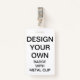 Custom printed personalised 2.13" x 3.38" PORTRAIT BADGE WITH METAL CLIP Blank Template. Design, create, make your own. Your photo, image, text, logo, graphics in full colour edge-to-edge print on the front and the back, horizontal or vertical. Made of PVC plastic, durable, won't fade or tear. Retractable, Metal Clip, Lanyard Necklace, or Just Badge. Best for office and business identity use, expos, exhibitions, conferences and corporate events.