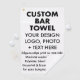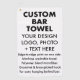 Custom personalised (Golf) Bar Towel blank template, 16" x 24", 80% woven polyester and 20% polyamide blend microfiber with brass-plated hook and grommet, machine washable. Liquid resistant, hand wash only. Make, create your own personalised BAR TOWEL. Upload your own logo, design, photo, image plus add text.