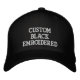 Custom embroidered personalised BLACK BASIC FLEXFIT BASEBALL CAP Blank Template. Design, create, make your own. 3 designable areas - customise embroider your logo, image, text on the front and side design areas of the cap. Comfortable fit high quality baseball cap in two stretchable sizes, featuring a Permacurv® visor, silver underbill, fused hard buckram 8.89 cm crown, 6 sewn eyelets for breathability and taped seams. Caps available in 12 colour options. Best for small business marketing, promotional, advertising and staff use, for men, women and kids, and for birthday and Christmas gifts.