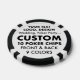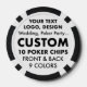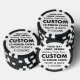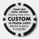 Custom personalised (set of 10) BLACK Casino / Poker Chips. Design, create, make your own casino chips from a template or blank. Add your logo and branding for business promotion, and makes a perfect favour gift for a wedding, or token for a birthday, sweet sixteen or bachelorette party, corporate celebration or other special event. A great customisable, personalised gift for Christmas or any occasion. These fun casino chips have an 'easy stack' textured surface. Choose from 9 colours of classic stripe on the poker chip edge: Red, Blue, Green, Black, Yellow, Pink, Orange, Light Blue and Grey, and customise the front, back and edge of your poker chips with a photo, picture, image or design, and add text, vividly printed on high quality composite plastic. Poker Chip Dimensions: 1.55" diameter x 0.125" thick.