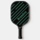 Elevate you game and your style with this custom designed and personalised pickleball paddle. Black background with sporty teal lines and your name or initials. Great gift.