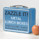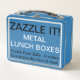 Custom printed personalised PALE LIGHT BLUE METAL LUNCH BOX Blank Template - 6.75” high x 8.625” wide x 3.75” deep, Weight: 12 oz. Design, create, make your own. Your photo, image, text, logo, graphics in full colour print on one side or on both sides of the lunchbox. Food contact safe interior material, durable - CPSIA complaint - tin plate, with collapsible black plastic handle. Choose from 6 base colours: White, Stainless, Black, Dark Blue, Light Blue & Red.
