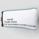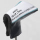 Custom printed personalised PUTTER GOLF CLUB HEAD COVER with LIGHT BLUE piping Blank Template - 6" long x 5" wide x 3" thick. Design, create, make your own. Made of polyester, cotton, and marine vinyl, easily fits most standard drivers, magnetic closure for quick fitting, comes in 15 piping colours, made in the USA! Best for golfing addicts and golf clubs, and for Christmas and birthday gifts.