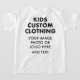 Custom personalised clothing for kids. Design, create, make your own custom children's clothes from a template or blank. Personalised custom printed clothing for children, including all over print kids' clothes. T-shirts, hoodies, sweatshirts, sports wear, socks and more - for girls and boys. The perfect customisable, personalised gift for Christmas, a birthday, kids' party, baby shower, wedding or other special occasion. Customise with a photo, logo or design, and add text. Add your logo and branding for business use.