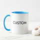 Custom printed personalised LIGHT BLUE 11oz COMBO (COMBINATION) RINGER MUG Blank Template - 3.2” diameter x 3.8" high. Design, create, make your own. Colour inside and handle. Customise the outside with photo, text, pattern, monogram, image. Strong, ceramic construction. Microwave and dishwasher safe. Meets or exceeds FDA requirements for food and beverage safety.