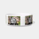 This is a heavy, durable bowl decorated with Tibbies of many colors, the perfect size for hungry/thirsty Tibs. The design is interesting and printing clear.