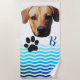 Fun customisable Dog theme beach towel, personalised with name Initial. Add your own favourite pet photo for a unique personalised dog lover gift idea.