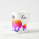 Custom personalised bone china coffee or tea mug with colourful elephant design and name.