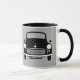 Classic Morris Minor mug with a Morris Minor on one side and a Morris badge on the other; add your own name or number to the reg. plate.