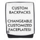 Custom printed personalised ADULT SIZE BOLDFACE INTERCHANGEABLE FACE BACKPACK Blank Template - 17" high x 13" wide x 6" deep. Design, create, make your own. Sublimation print offers vivid, vibrant photo, image, text. Change the customised front flap faceplate in seconds. Swap your design without changing your backpack. Quality, weatherproof, durable, rugged polyester canvas exterior, comfortable wide padded shoulder straps, big main compartment, large zip front pocket, built-in laptop sleeve (fits most laptops up to 17"), side pockets.