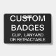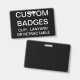 Custom printed personalised 3.38" x 2.13" BADGE Blank Template (with BLACK Background - change to any colour). Design, create, make your own. Your photo, image, text, logo, graphics in full colour edge-to-edge print on the front and the back - horizontal or vertical designs. Made of PVC plastic, durable, won't fade or tear. Available with Lanyard, Metal Clip, Retractable Clip, or Badge Only.