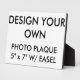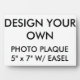 Custom printed personalised LARGE 5" x 7" PHOTO PLAQUE Blank Template. Design, create, make your own. A stunningly crisp dye-sublimation print of photo, image, text giving a professional display without a frame. Hardboard panel with attached easel stand, designed for either portrait or landscape display. UV resistant glossy coating protects from scratches and fading for years. Easy wipe-clean surface.