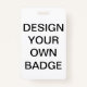 Custom printed personalised 2.13" x 3.38" PORTRAIT BADGE Blank Template. Design, create, make your own. Your photo, image, text, logo, graphics in full colour edge-to-edge print on the front and the back, horizontal or vertical. Made of PVC plastic, durable, won't fade or tear. Retractable, Metal Clip, Lanyard Necklace, or Just Badge. Best for office and business identity use, expos, exhibitions, conferences and corporate events.