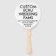 Custom printed personalised 5.75" PADDLE ECRU WEDDING FANS (sets of 10) Blank Template. Design, create, make your own. Your wedding photo, image, message, text, bride and groom names, logo, graphics, in full colour print individually designed on both sides of the fan. 5.75" diameter. Available in white and ecru cardstock (customise to any colour). Simple assembly required - wood handles and 4 glue dots per fan included (available pre-assembled for an upcharge). Available Round, Heart shaped, Paddle or Rectangle. Best for weddings, but also great for a Sweet 16, Quinceanera birthday, or any hot, summer or outdoor event, and for corporate and business marketing or promotional use.