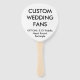 Custom printed personalised 5.75" PADDLE WHITE WEDDING FANS (sets of 10) Blank Template. Design, create, make your own. Your wedding photo, image, message, text, bride and groom names, logo, graphics, in full colour print individually designed on both sides of the fan. 5.75" diameter. Available in white and ecru cardstock (customise to any colour). Simple assembly required - wood handles and 4 glue dots per fan included (available pre-assembled for an upcharge). Available Round, Heart shaped, Paddle or Rectangle.
