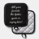 Cute or funny quote oven mitt. Inspire yourself with an inspirational quote or saying, a great way to encourage and motivate yourself around the house in the kitchen . Black background with handwritten style white font makes a great birthday gift for women, for mum, boss, or just for friendly reminders and home decor while cooking, baking, grilling on the bbq or just for fun.