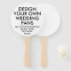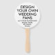 Custom printed personalised 5.75" ROUND WHITE WEDDING FANS (sets of 10) Blank Template. Design, create, make your own. Your wedding photo, image, message, text, bride and groom names, logo, graphics, in full colour print individually designed on both sides of the fan. 5.75" diameter. Available in white and ecru cardstock (customise to any colour). Simple assembly required - wood handles and 4 glue dots per fan included (available pre-assembled for an upcharge). Available Round, Heart shaped, Paddle or Rectangle. Best for weddings, but also great for a Sweet 16, Quinceanera birthday, or any hot, summer or outdoor event, and for corporate and business marketing or promotional use.