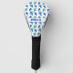 Custom name personalised Saguaro Cactus Pattern Southwestern Colours Desert style golf head cover in shades of turquoise and cobalt blue, green and white. Cute cactus pattern personalised golf accessories for yourself or your favourite golfer.