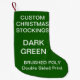 Custom printed personalised SMALL 9" x 16" DARK GREEN BRUSHED POLYESTER CHRISTMAS STOCKING Blank Template. Design, create, make your own. Your photo, image, text, logo, graphics in full colour print on both sides of the stocking (Single sided print also available). Polyester fabric options: Faux Linen, Brushed Polyester, Coral Fleece. Sturdy sewn-in loop for hanging, machine washable. Made in USA.