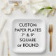 Custom Personalised blank template SQUARE Paper Plates - Large 9" diameter. Set of 8 disposable party plates.