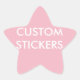 Custom printed personalised 20 GLOSSY FINISH 1.5" STAR SHAPED STICKERS (EXAMPLE OF PINK BACKGROUND PRINT) Blank Template (also available in Matte finish). Design, create, make your own. Your photo, image, text in full colour full-bleed edge-to-edge print on the front of the sticker. 20 stickers per sheet. Printed on white acid-free paper, with scratch-resistant front and easy peel-and-stick back.