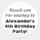 Custom Personalised Thank You Birthday Party Classic Round Sticker