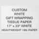 Custom printed personalised THICKER HEAVYWEIGHT 18lb 17" x 23" (LARGE SIZE) WHITE TISSUE PAPER FOR WRAPPING GIFTS Blank Template. Design, create, make your own. Your photo, image, text, logo, graphics in edge-to-edge full colour print. 10lb paper also available in 7 colours, comparable to standard tissue paper. Best for wrapping jewellery, small gifts, party favours, wine and champagne bottles, and padding out gifts boxes.