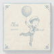 Cute stone coaster featuring a pencil drawing of a little boy in a sailor suit floating under a balloon in the style of Delft ceramic tiles. The text is fully personalizable. Perfect as a door sign for a new baby nursery or even as an original birth announcement.