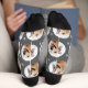 Show your love for your puppy dog or cat with these fun and cosy custom-printed socks! Our premium crew socks feature a pattern of 2 favourite pet photos along with small white paw prints. Create your own by simply adding your picture to the two round placeholder images. Makes a great gift idea and stocking stuffer! Photo tip: crop your photo to a square shape prior to upload so it is centred within the round space. The dark grey background colour can be modified.