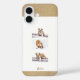 Custom Pet 3 Photo Collage and Name iPhone 16 Case. A personalised photo phone case for a dog owner. Modern design with faux gold glitter. Personalise the phone case with 3 of your favourite pet photos and a name in trendy script. A perfect personalised gift for a dog owner and an animal lover.