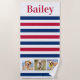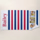 Custom Pet Dog 3 Photo Collage Red Blue Stripe Beach Towel