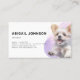 Showcase your pet grooming services with this delightful and professional business card design, perfect for animal lovers and pet care professionals. Featuring a charming watercolor background in soft purple tones and an adorable dog illustration, this card is an eye-catching way to connect with clients in your area or beyond.