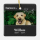 This custom pet memorial in elegant dark grey makes a touching tribute to a best friend. Commemorate a life filled with the love of a precious dog or cat with this cute ornament. Featuring a sweet labrador and the well known phrase, "Forever in our hearts" on both sides. Customise with your dog's or cat's photos, their names and their years living.