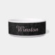 Custom Pet Name Black Botanical Blush Pink Script Bowl.