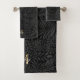 Custom Pet Name Black Botanical Gold Script bath towel set with a monogram and script name.