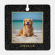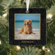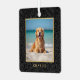 Custom Name Photo black floral botanical metal ornament with your pet’s name in an elegant gold serif font.