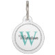 Custom Pet Name Teal Monogram White Pet ID tag.