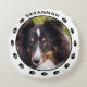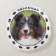 Destei's personalizable pet photo template design featuring some dog paw prints on the edges and a personalizable text area on the top. The photo is placed in the middle in a round shape together with a thin black border. You can add different photos on the front and back, if you wish. You can also change the colour of the paw prints and the text to any other colour, if you wish.