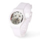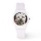 Cute watch, with custom photo of your favourite pet's picture. Graphics of black paw prints represent the hours. Customise to add any text you want.