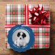 Custom Pet Photo with Name Blue Border Holiday Tree Decoration Card