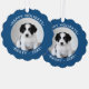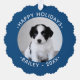 Create your own cute custom ornament featuring your pet photo and text on both sides. Easily add your dog/cat/furbaby photo, name, year, and message (Happy Holidays, Merry Christmas, Happy New Year,...) in the sidebar. The text will appear in curved white text on a blue border around your photo. Makes a fun stocking stuffer or gift tag for family pet lovers and a wonderful keepsake for you.