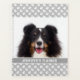 Personalizable pet photo template on a grey background colour that has a pattern of white dog paw prints. There is also a personalizable text area under the photo for your custom text.