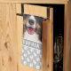 Custom Pet Photo With White Paws On Grey & Name Tea Towel