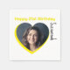 Make any special occasion fun with a heart shaped photo and message on a napkin. Replace the placeholder photograph with your photo. A square photo with subject centred works best. Personalise the template fields, remove text or use the edit design tool to select a font style, size, and colour you prefer. The design can service for graduation, birthday or bridal shower just to name a few special occasions.