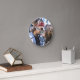 I needed a clock for my bathroom. Yes, my bathroom. So that it would "fit" and look right in the space, I needed something that was frameless, and contemporary. This clock has the water/nature/serene look I wanted. It looks great on my bathroom wall! The blue is well suited to resemble water and the beige matches the vanity. I decided to customize it with inspirational words....perfect! This was my first order, and now, I will certainly come back for future purchases. Very nice, the printing is beautiful and I'm pleased with it.