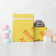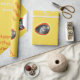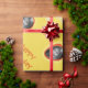 A fun yellow wrapping paper where you can add a custom photo and a personal greeting. Photo will appear inside a orange lined circle. Text is either orange or very light grey/silver.