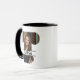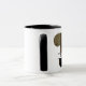 This mug has a minimalist design featuring a custom image shaped into a fat alphabet letter, T, with a space in the center to add a person's name. It is a great way to create a personalized mug for a special person.